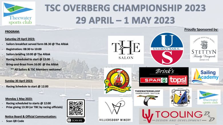 Don’t forget to ENTER NOW for the TSC OVERBERG SAILING CHAMPIONSHIP 2023 29 April – 1 May 2023 at Theewater Sport Club.